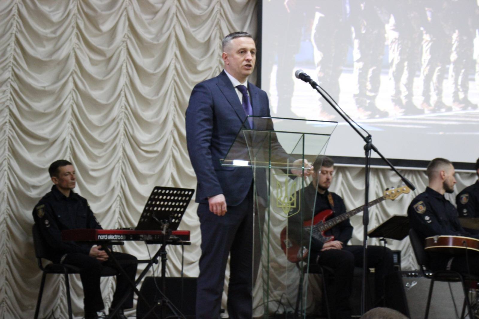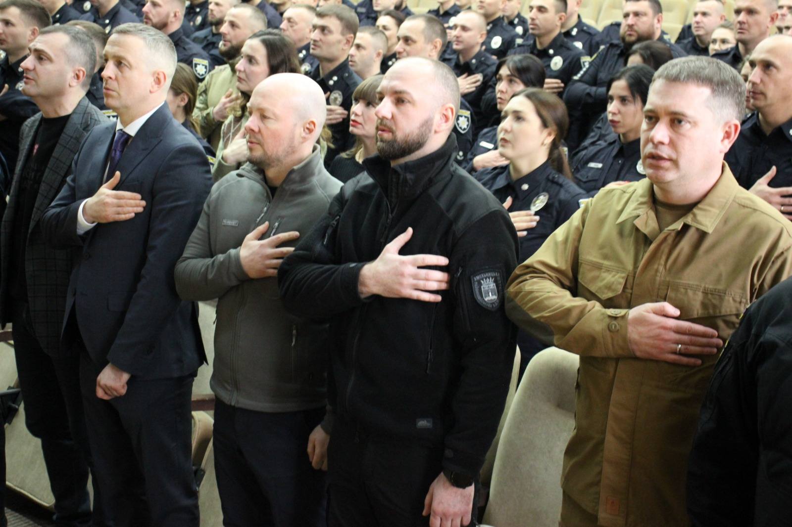 Також до привітань долучилися керівництво області та міста, начальник Департаменту патрульної поліції України генерал поліції третього рангу Євгеній Жуков, керівники силових структур області та інші запрошені.