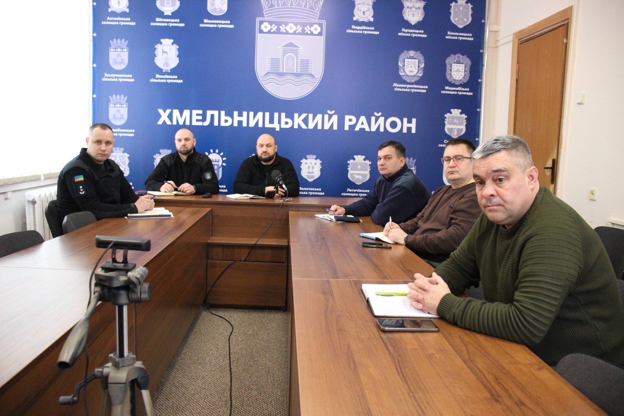 Участь у засіданні в онлайн-форматі взяли начальник Хмельницької районної військової адміністрації Костянтин Кордонський, перший заступник голови Хмельницької РДА Валерій Черватюк, начальник відділу цивільного захисту та взаємодії з правоохоронними органами РВА Ігор Савчук, начальник управління соціально-економічного розвитку територій, архітектури, взаємодії з органами місцевого самоврядування та державної реєстрації Вадим Ващук, т.в.о. начальника Хмельницького міськрайонного управління ГУ ДСНС України в Хмельницькій області Дмитро Урунов, а також представники територіальних громад.