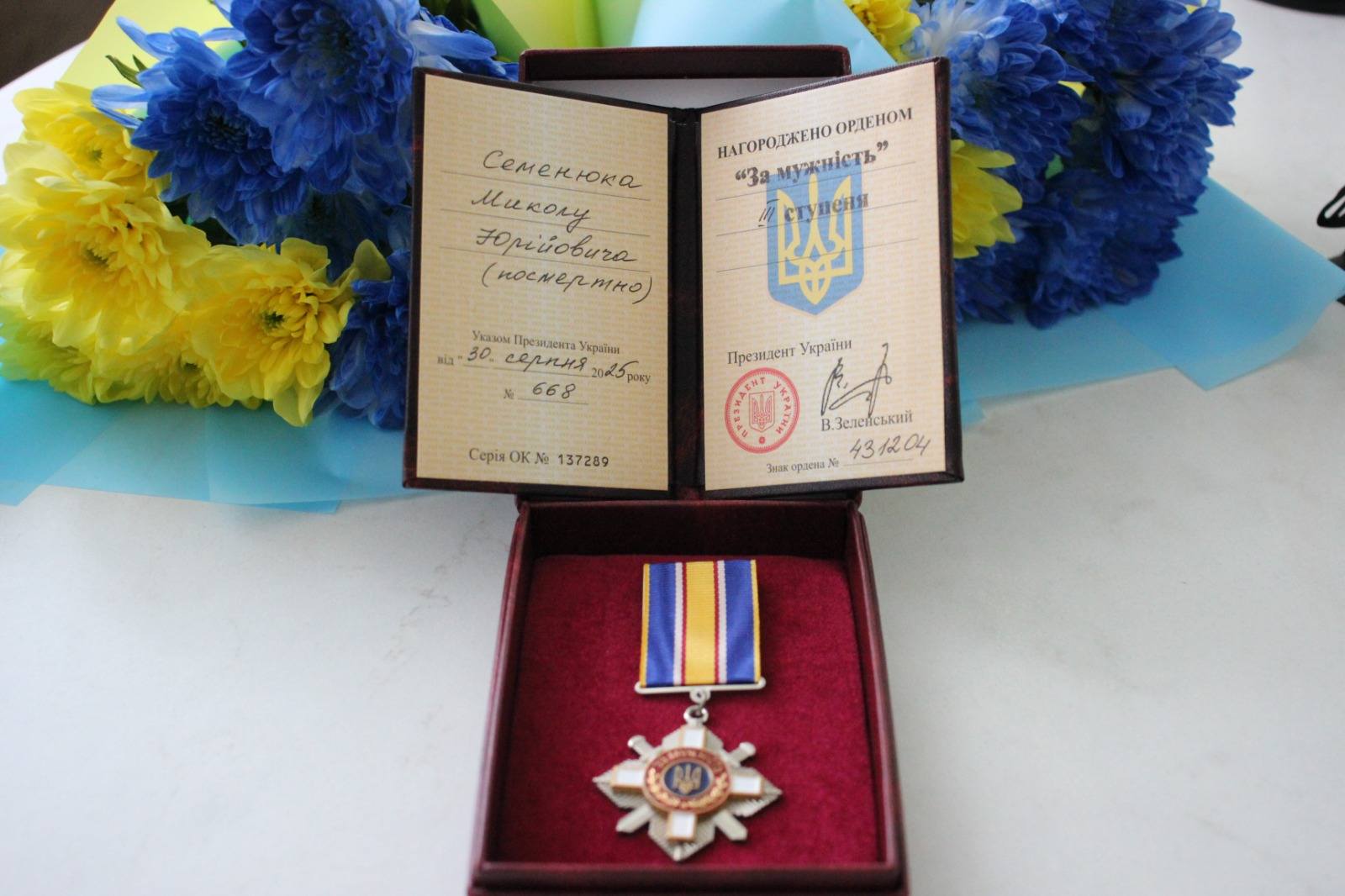 Державну нагороду було передано дружині загиблого воїна — Анастасії Семенюк.