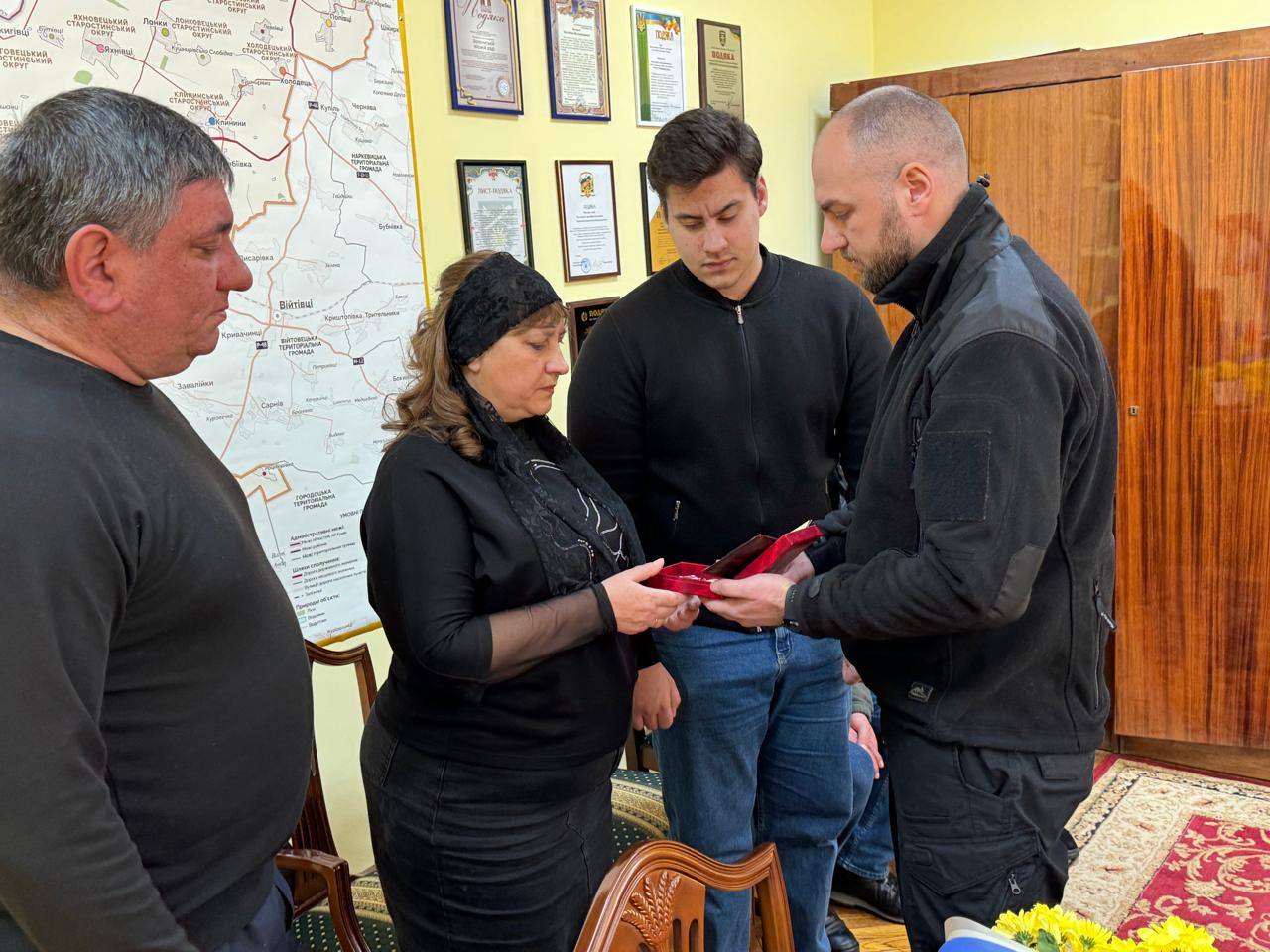 За дорученням начальника Хмельницької обласної військової адміністрації Сергія Тюріна та начальника Хмельницької районної військової адміністрації Костянтина Кордонського, перший заступник голови РДА Валерій Черватюк разом із підполковником Хмельницького районного ТЦК та СП Володимиром Марусієм і представниками територіальних громад Хмельницького району передали державні нагороди родинам полеглих Героїв України.