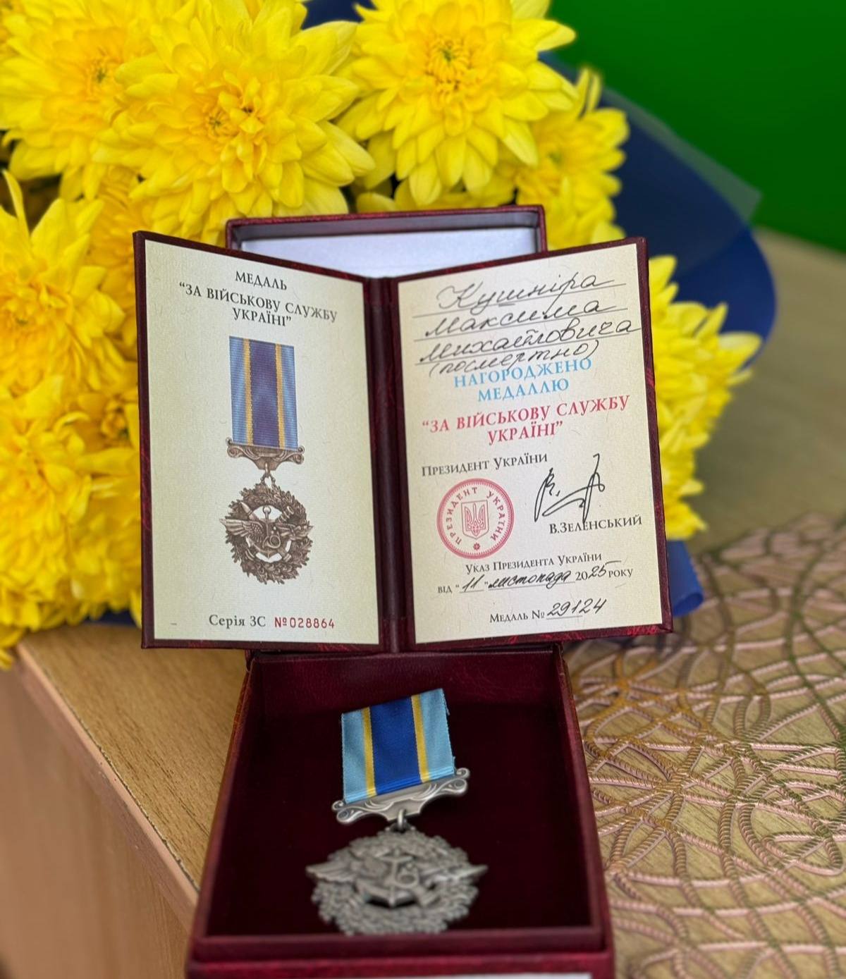 Відзнакою “За військову службу Україні” (посмертно) нагороджено військовослужбовця:
