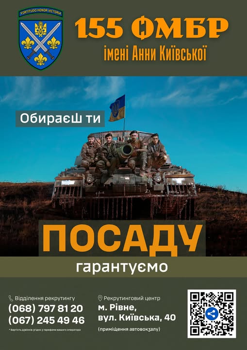 Телефонуйте до відділення рекрутингу 155 омбр: 068 797 81 20, 067 245 49 46