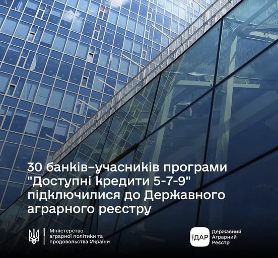 З початку 2025 року 30 українських банків підключилися до Державного аграрного реєстру. Вони є учасниками програми «Доступні кредити 5-7-9».