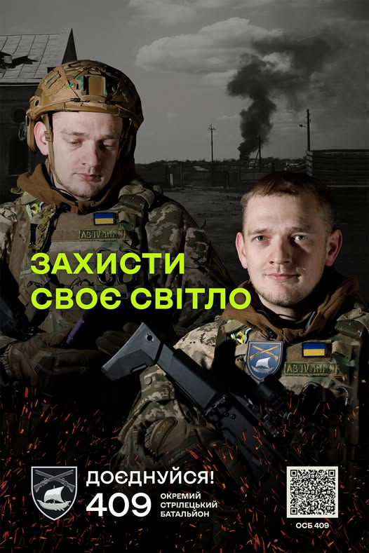 Україна потребує сильних, мотивованих і відважних захисників! Якщо ви готові стати на захист своєї держави, приєднуйтеся до військових частин 409 окремого стрілецького батальйону.