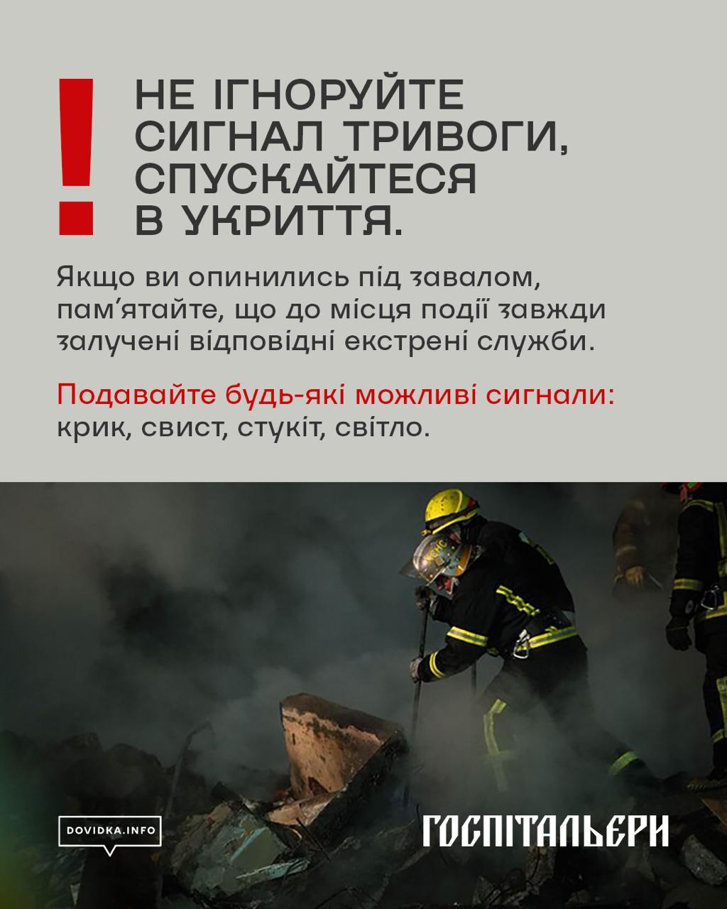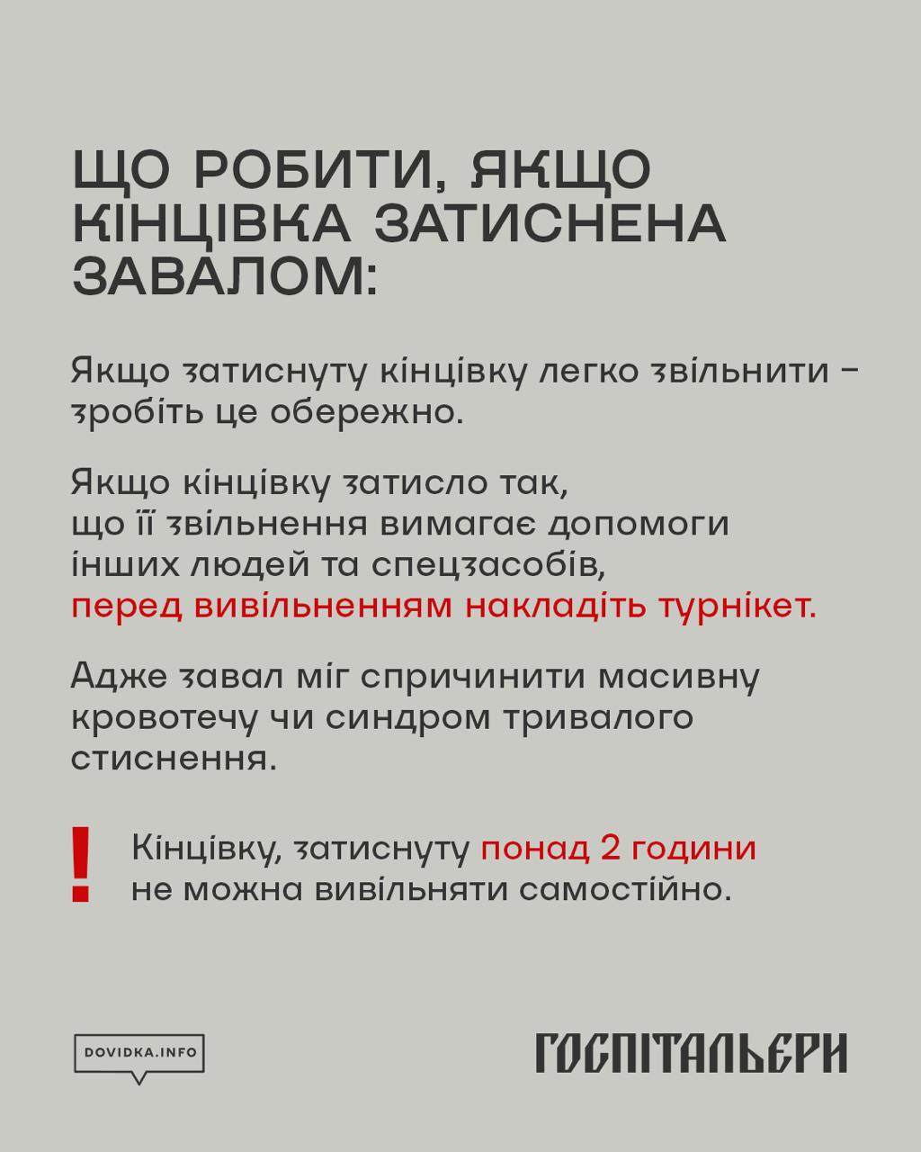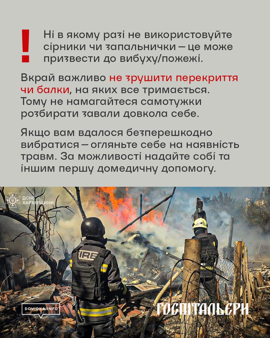 В інфографіці – поради від Державної служби України з надзвичайних ситуацій та медичного батальйону «Госпітальєри», перевірені в умовах реальних рятувальних операцій. Ці знання можуть врятувати життя до приїзду рятувальників, а також полегшити їм роботу під час пошуково-рятувальних робіт.