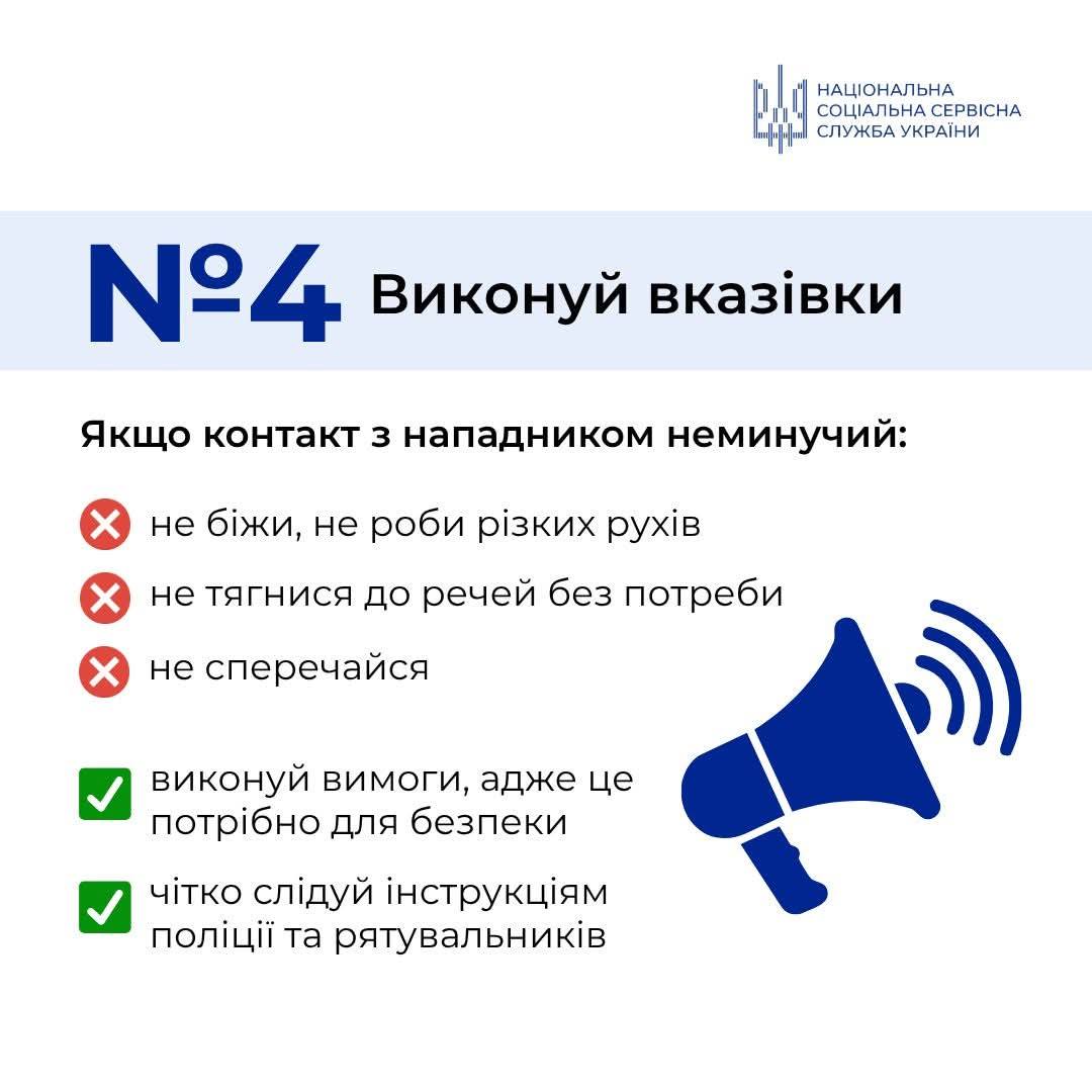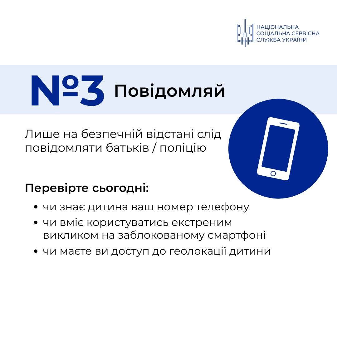 Слід систематично нагадувати, що власна безпека починається з простих речей: уважності до оточення, здатності не піддаватися паніці, діяти виважено. Завдання дорослих – не лише інформувати, а й формувати внутрішню стійкість, відповідальність та базові навички безпечної поведінки.