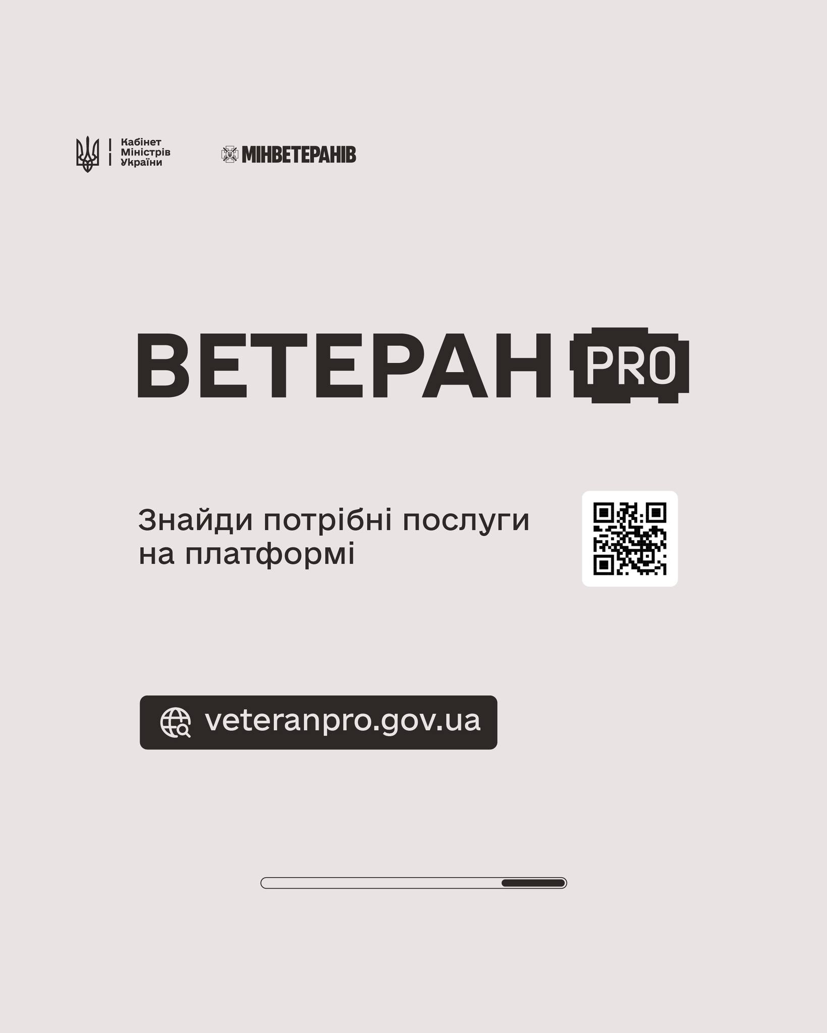 Щоб дізнатися про більше послуг заходьте на єдину цифрову платформу для ветеранів і ветеранок