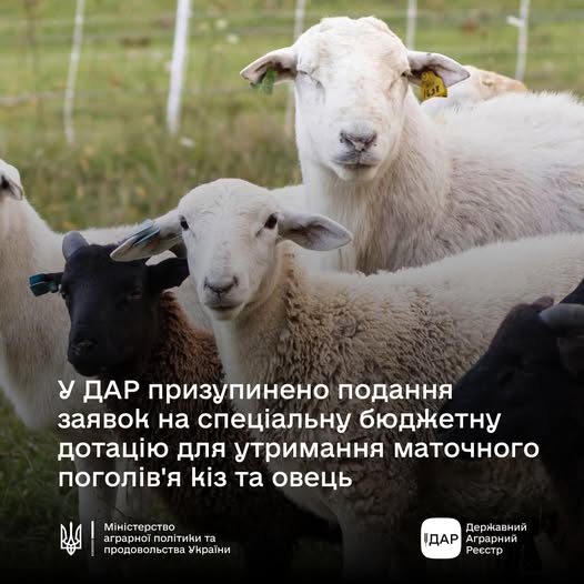 Призупиняємо в ДАР подання заявок на спеціальну бюджетну дотацію для утримання поголів’я кіз та овець