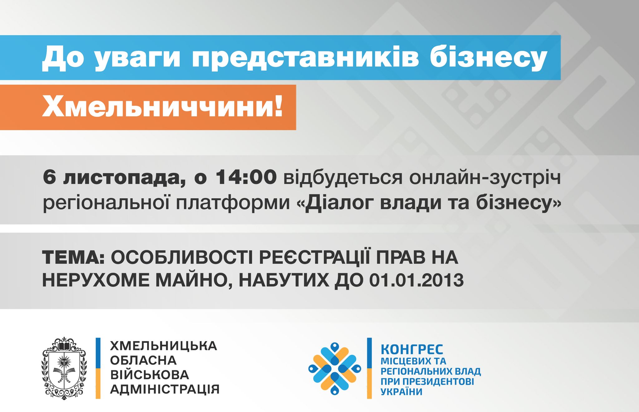 Запрошуємо Вас взяти участь у зустрічі в рамках регіональної платформи «Діалог влади та бізнесу», яка відбудеться у четвер, 06 листопада, о 14:00 в онлайн-форматі.