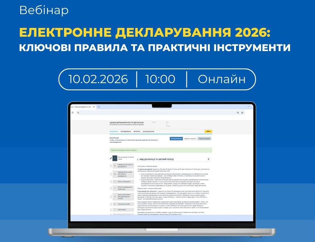 Тоді долучайтеся до вебінару «Електронне декларування 2026: ключові правила та практичні інструменти»
