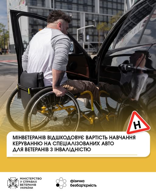 «Покращення мобільності та незалежності ветеранів війни – один із ключових напрямків роботи Мінветеранів. Ми ініціювали зміни до постанови КМУ №432, завдяки яким люди з інвалідністю з-поміж ветеранів війни, членів їхніх сімей та родин полеглих Захисників і Захисниць зможуть навчатися керувати авто та отримати водійське посвідчення у спеціальних автошколах за кошти Мінветеранів», – розповіла заступниця Міністра у справах ветеранів Юлія Кіріллова.