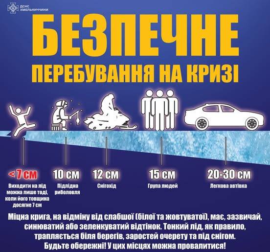 – Уникайте риболовлі чи прогулянок по кризі, доки товщина льоду не стане безпечною.