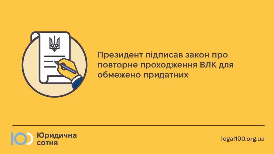 Президент підписав законопроєкт №12457 про обов`язкове проходження ВЛК для обмежено придатних до служби.
