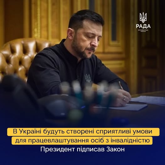 Президент України Володимир Зеленський підписав євроінтеграційний Закон щодо забезпечення прав осіб з інвалідністю на працю № 4219-IX.