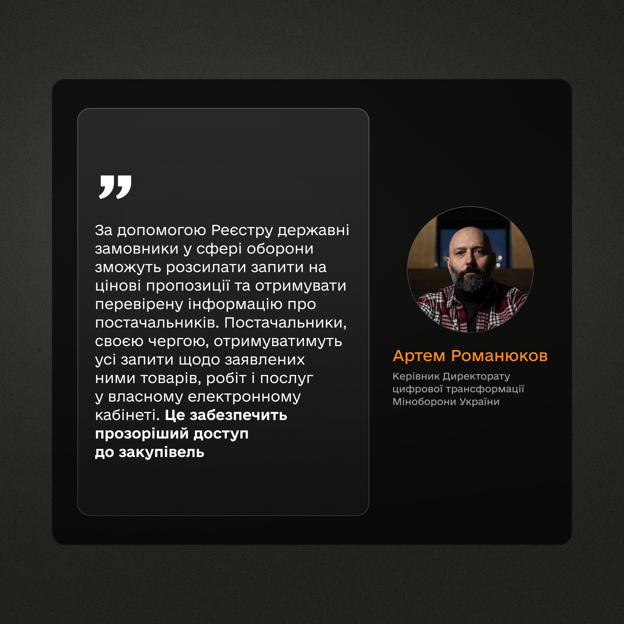 Це визначний крок до прозоріших і ефективніших оборонних закупівель: менше ризиків недобросовісних контрактів, більше чесної конкуренції та безпеки даних.