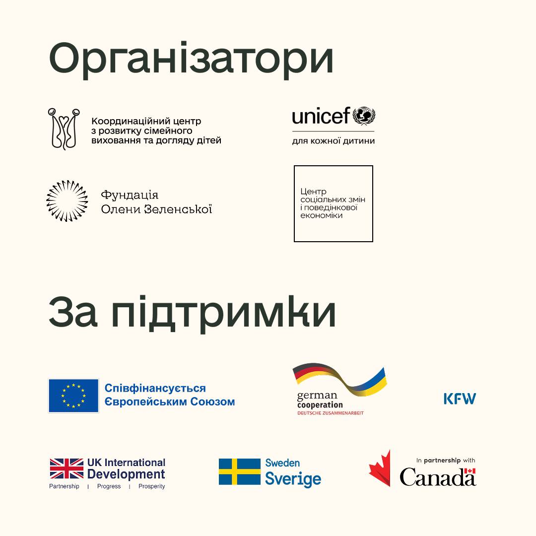 Ініціативу очолює Координаційний центр з розвитку сімейного виховання та догляду дітей у партнерстві з ЮНІСЕФ, Фундацією Олени Зеленської, Центром соціальних змін і поведінкової економіки. За фінансової підтримки Європейського Союзу, Федерального міністерства економічного співробітництва і розвитку Німеччини (BMZ) через державний банк розвитку KfW та урядів Канади, Швеції та Великої Британії.