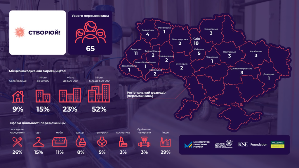 Міністерством економіки, довкілля та сільського господарства України спільно з фондом Ukraine-Moldova American Enterprise Fund у 2024 році започатковано грантову програму “СТВОРЮЙ!”.