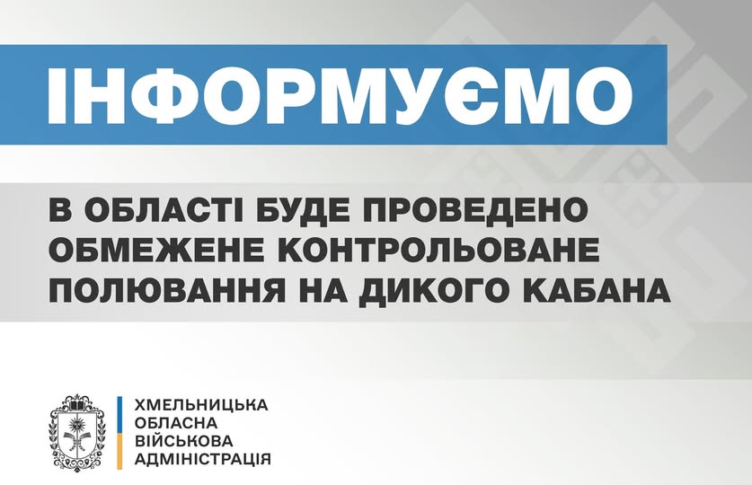 5 січня 2026 року на засіданні Ради оборони Хмельницької області ухвалено рішення щодо проведення контрольованого (обмеженого) полювання на дикого кабана в межах мисливських угідь області.