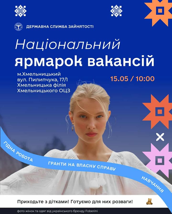 15 травня з 10.00 по 14.00 у м.Хмельницькому по вул. Пилипчука 17/1 (приміщення Хмельницької філії Хмельницького ОЦЗ) відбудеться національний ярмарок вакансій. У цей день подібні ярмарки пройдуть одночасно у всіх регіонах країни, зокрема, у м.Кам’янець-Подільський, м.Шепетівка, м.Волочиськ, м.Дунаївці, м.Ізяслав, м.Красилів, м.Славута, м.Старокостянтинів та селищі Теофіполь.
