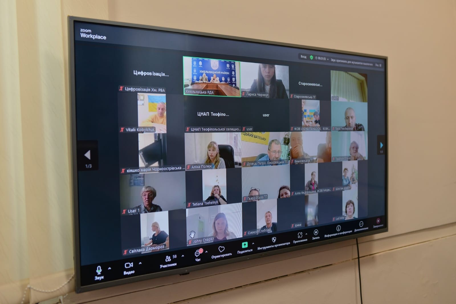 За дорученням начальника Хмельницької районної військової адміністрації Костянтина Кордонського, начальник управління з питань ветеранської політики Хмельницької РВА Наталія Казєва провела онлайн-нараду на тему: «Взаємодія суб’єктів, що реалізують державну політику соціального захисту ветеранів війни та членів їх сімей, спрямовану на створення ефективної системи надання належної підтримки та допомоги».