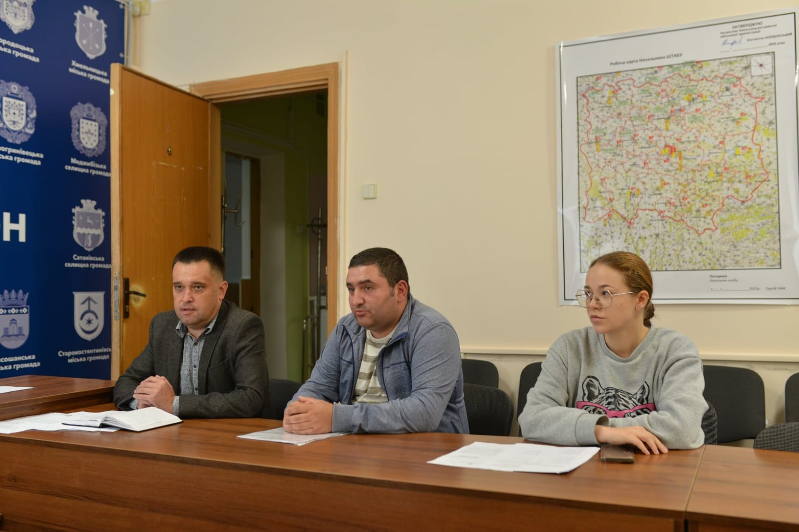 Участь у засіданні взяли начальник управління соціально-економічного розвитку території, архітектури, забезпечення взаємодії з органами місцевого самоврядування, державної реєстрації Вадим Ващук, начальник відділу цивільного захисту та взаємодії з правоохоронними органами РВА Ігор Савчук, а також представники управління Держпродспоживслужби в Хмельницькому районі.