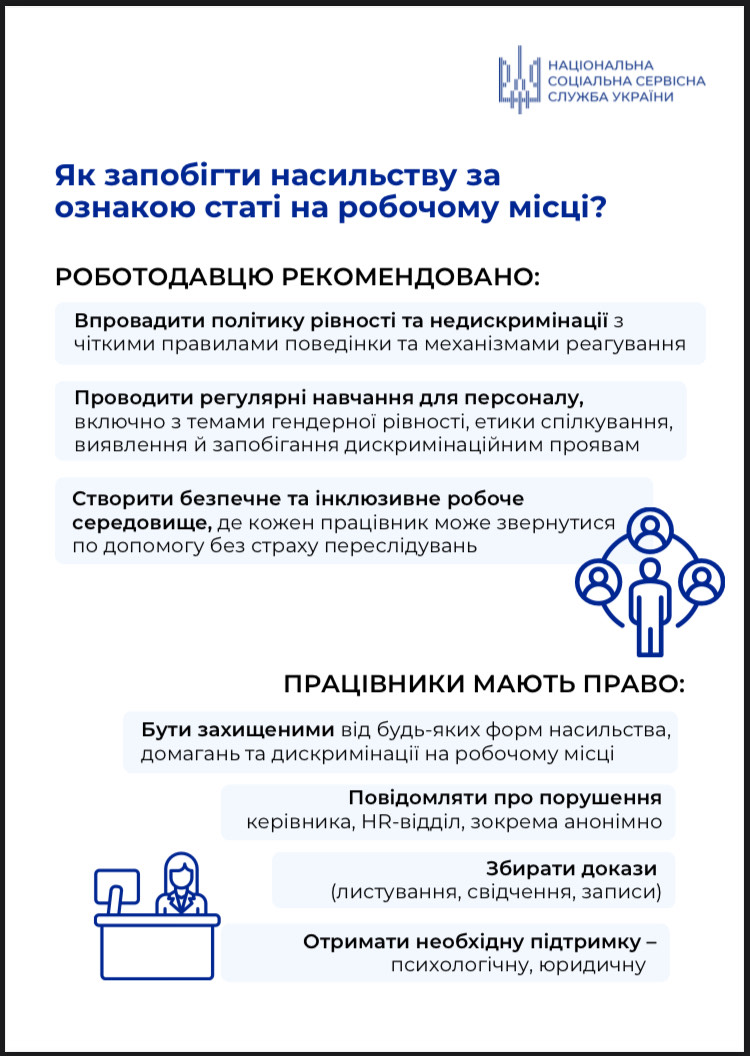 Будь-який прояв насильства або домагань є неприпустимим і суперечить принципам рівності, поваги та гідності людини. Забезпечення безпечних умов праці, вільних від дискримінації та насильства, є обов’язком кожного роботодавця та невід’ємною складовою сучасної кадрової політики.